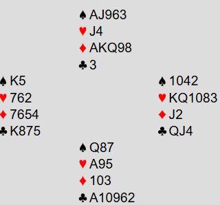Noen ganger er bridge brutalt og en kan bli ribbet for poeng uten å ha så mye å gjøre med det. Her er et spill fra starten av mix-finalen. Du får prøve deg med vest sine kort: