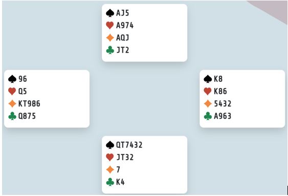 Her er et spill fra det fjerde settet som var perioden vinnerlaget fikk det endelige overtaket i finalen mot lag SHOURIE som vel var de flestes favoritter før finalen. Men de ble knust (godt over 100 IMP).