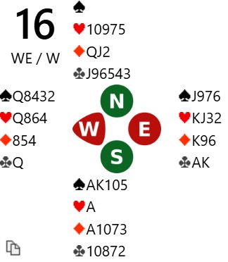Det er en nokså sikker slem, og en ganske brukbar storeslem. Det blir ofte tretten stikk her.