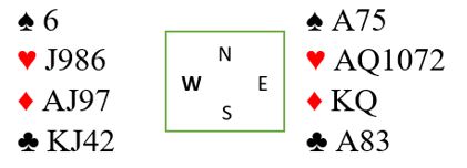 Husk øst vet at makkeren har ca. 10-12 poeng og de poengene er i hjerter, ruter og kløver. Da må det være gode sjanser for tolv stikk.
