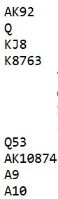 Hvis kløver ess spilles blir det selvsagt ingen problemer. Men vest kan også være den som har firekorts kløver. Med denne sitsen kan det bli to kløvertapere om kongen spilles først. Og om kløver ess spilles tidlig får vest to kløverstikk om esset spilles først.