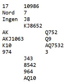 Så var det N/S sin tur å ha kjempekort. Allerede i spillet etter fikk nord utlevert disse kortene: