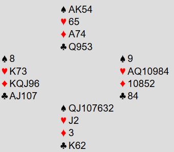 Det er imidlertid en bet i kontrakten 4 spar, og 4 hjerter kan gå bet om det kommer ruter ut til esset, ruter til stjeling, spar til nord og nok en ruterstjeling.