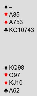 I parturnering er det jo alltid et dilemma når det gjelder mulig lilleslem i minorfarge, fordi en sleminvitt hvor en ikke ender i slem fører til at en blir spillende 5 i minorfarge i stedet for den utgangen som ofte gir høyere score, 3NT. Men så gode slemmer som dette vil man jo gjerne være i. Sånne slemmer gir alltid veldig god score, for det er alltid en haug med par i 3NT.