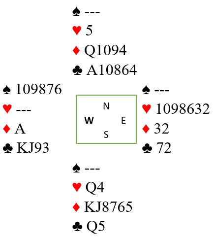 Forutsetningen for et innspill på det single trumfesset var altså til stede, men syd bommet på timingen da han tenkte «hjerteren må elimineres» og prøvde på det først. Vest fikk "kvittet seg" med trumfesset for tidlig, og etter det var en kløvertaper ikke til å unngå.