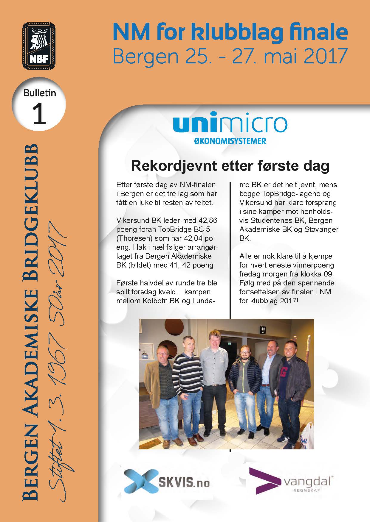 Sjette og siste spillekveld i Vinterturnering 1 ble spilt mandag 12.2. T Bakke - R Kavli vant sammenlagt med en skår på 308,78 % på fem tellende kvelder. Det gir et snitt på 61,7 % per tellende kveld. Kveldsresultater og sluttresultat sammenlagt finner du under Artikkel.