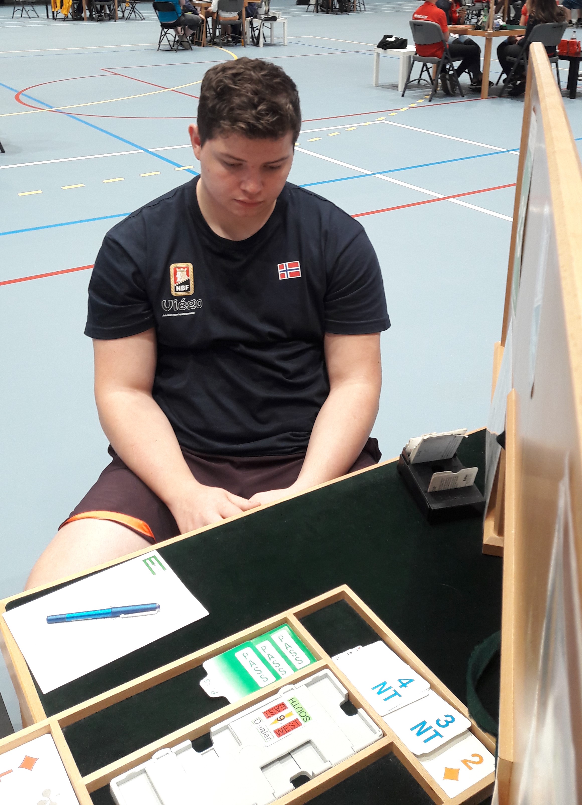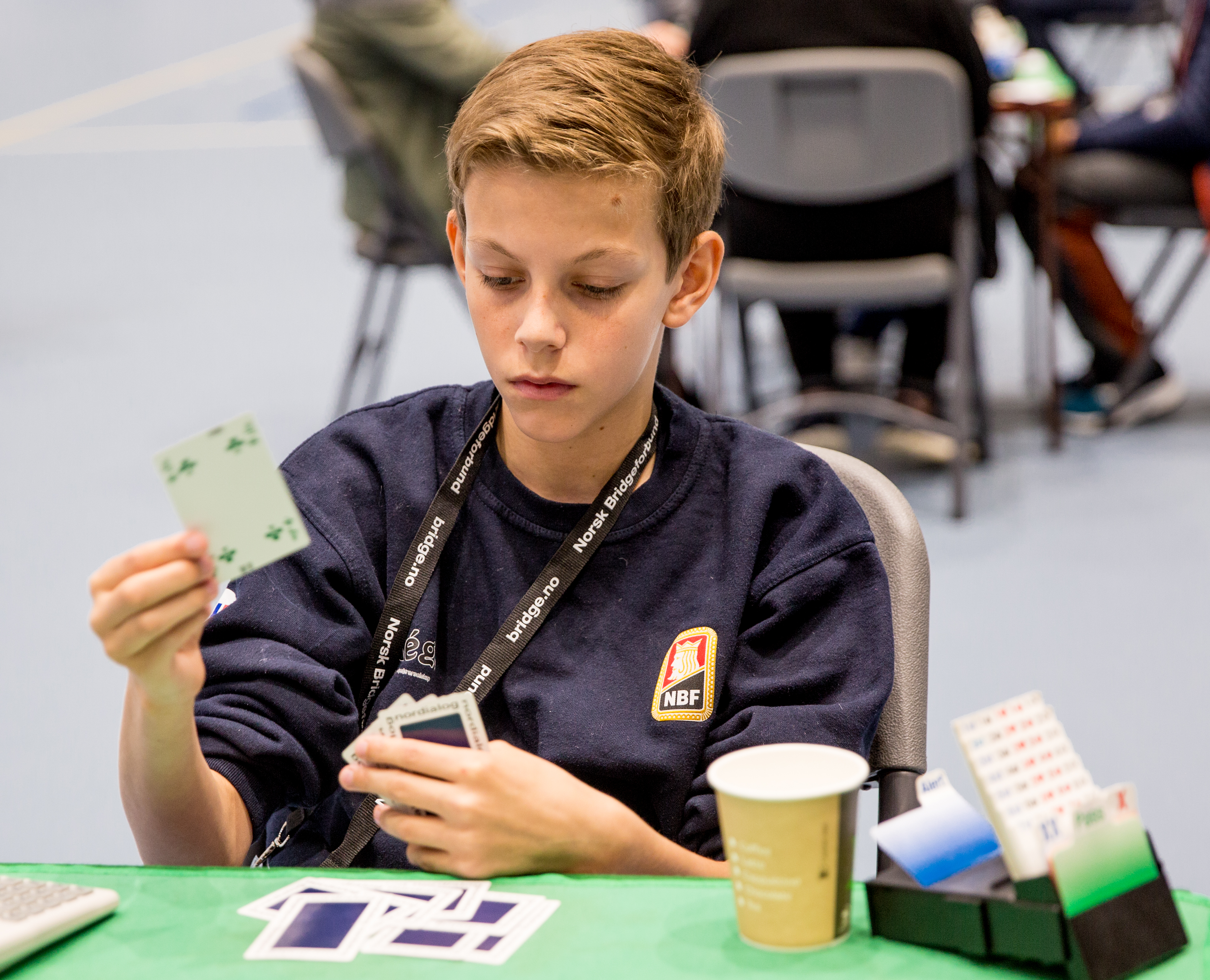 Nicolai begynte å spille bridge når han var åtte år gammel. Han kunne spilt på vårt yngste landslag, men velger heller å vise at alder ikke er et hinder og representerer Norges eldste juniorlag. I 2021 kvalifiserte han seg til parfinalen sammen med faren sin, det var imponerende nok det, men han synes ikke det var nok, så han tok sølv i NM par i en alder av 13 år! Han har i tillegg gull fra nordisk U16 i 2019. Det er få som spiller så mye som Nicolai. Hvis du ikke ser han på en turnering, spiller han sannsynligvis på nettet. Nicolai har allerede spilt i USA på et sponsorlag, så mange sier at han må man se opp for i framtiden, men det er nok lurt å se opp for han allerede nå. Han er nå klar for å spille U26 i Nederland med Markus.
