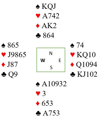 Dette spillet er et unntak fra det med å la være å trumfe på den siden med flest trumf, for her du kan trumfe mange ganger med syds trumfer! Det blir et såkalt «Reverse dummy-spill». Du gjør om syds hånd fra «hovedhånd» til «dummy». Det skjer ved å stjele så mange ganger med syds trumfer at nord blir lengst i trumf. Her er det et perfekt mønster for en slik spilleføring. Det kan stjeles tre hjertere hos syd, og etter det har syd blitt kortere i trumf enn nord. Trumfutspillet stikkes fulgt av hjerter ess og hjerter til stjeling med det samme. Det er nok overganger til nord til å spille seg over dit og stjele enda to hjertere hos syd. Du kan godt (og bør) trumfe høyt siden syd nords trumfbeholding tar seg av trumfstikkene senere. (I sånne spille kan det også være bra å få rasket med seg ess og konger i sidefargene tidlig).