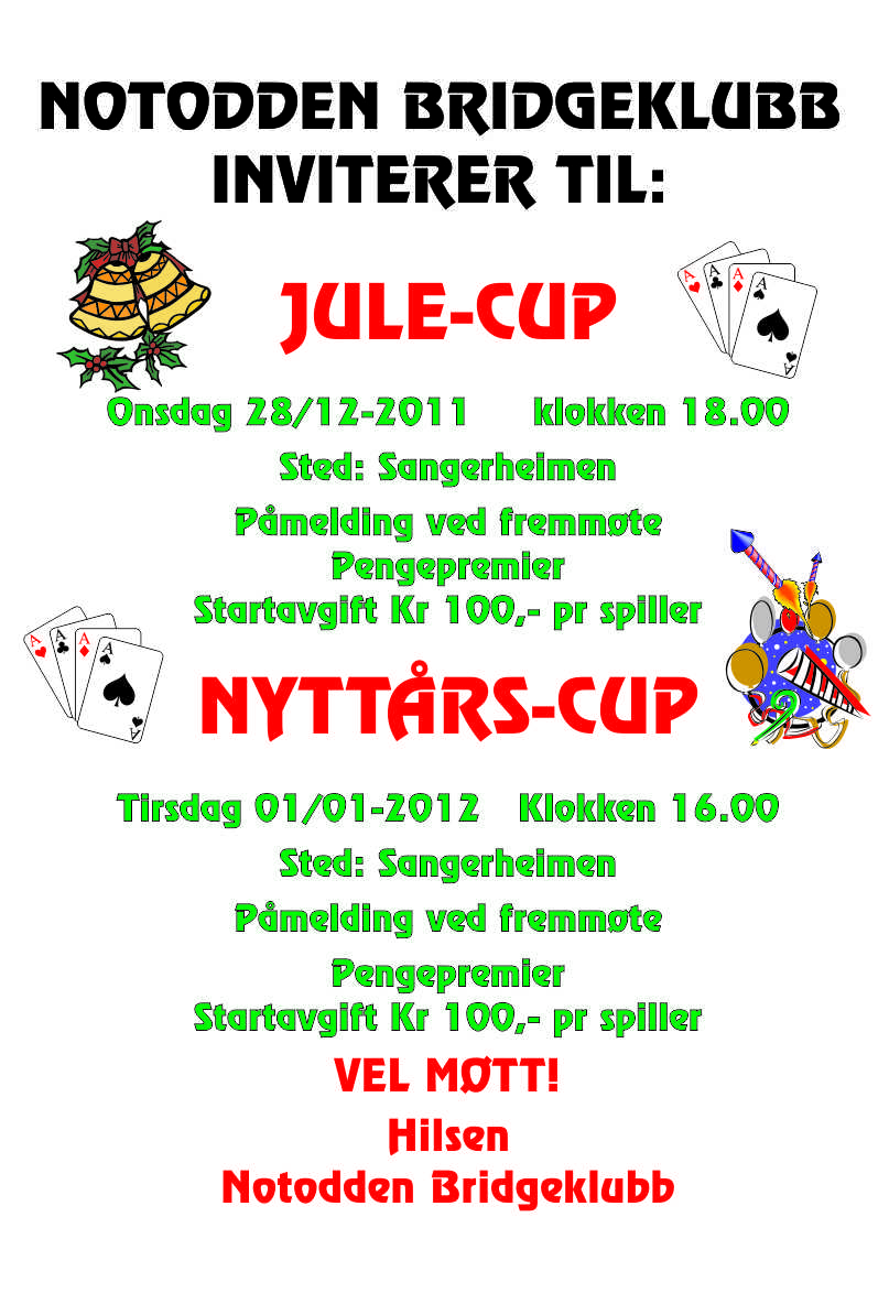 Ellers må dere ikke glemme våre egne cuper som blir arrangert onsdag 28 desember kl 18.00 og Nyttårscupen 1. januar Klokken 16.00.
