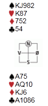 Tom hadde et vanskelig utspill og valgte til slutt liten ruter. Vi la lavt i bordet og Syd kom inn på kongen mens vi avblokkerte knekten.