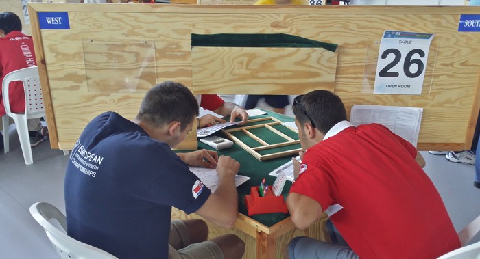 i VM. Fire seire i de fire første kampene og 51.5 poeng. (40 er middels). Det holder til en sjetteplass. Når Round Robin er ferdig, er de åtte beste lagene klare for kvartfinaler. De fire beste får velge seg motstander av lagene fra femte til åttende plass. Det står ikke noe om at det er Carry Over. Kampene i sluttspillet går over 56 spill, fire sesjoner a 14 spill. Youngsters har starta enda bedre og ligger på 4.plass etter tre kamper med 41.7 poeng (30 er middels). Jentene sliter mer, men der er vel ambisjonsnivået litt lavere og de tar en og en kamp. Noen seire er helt sikkert målet. Her en noen bilder Lars Arthur har sendt. Til venstre med ryggen til: Espen Flått Over: Tor Eivind Grude. Under: Kristoffer Hegge