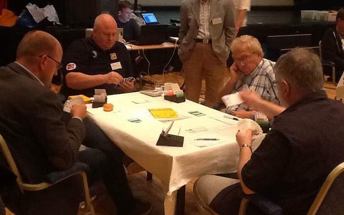 LIVE RESULTATER ____________________________________ Ole og Kjell Otto Kopstad har vært makkere i mange år. Når har de splitta opp og møter hverandre i Runde 6. Kjotto spiller med Lars Eide, mens Ole har Norgesmester Tor Eivind Grude på andre siden av bordet. Lokale helter i teten etter runde 5.
