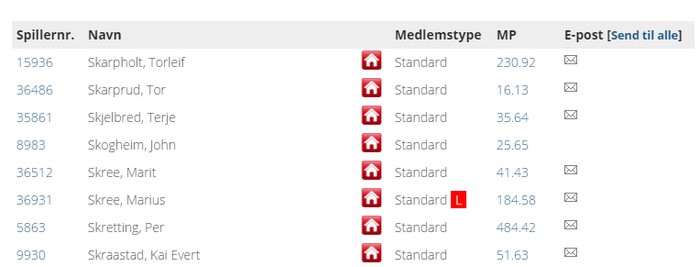 Etter 2 kvelder er stillingen i klubbmesterskapet i A-puljen: her. 3. og siste kveld spilles 21. april.