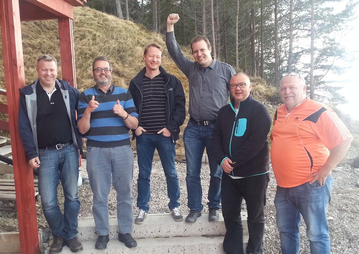 De tre beste parene fra parturneringa på søndag. Gull i midten, sølv til venstre og bronse til høyre. Fv. Stig Vestveit, Asbjørn Skramstad, Frederic Wilt, Håvard Heimset Larsen, Jon Sagbakken og Åsmund Jørgensen.