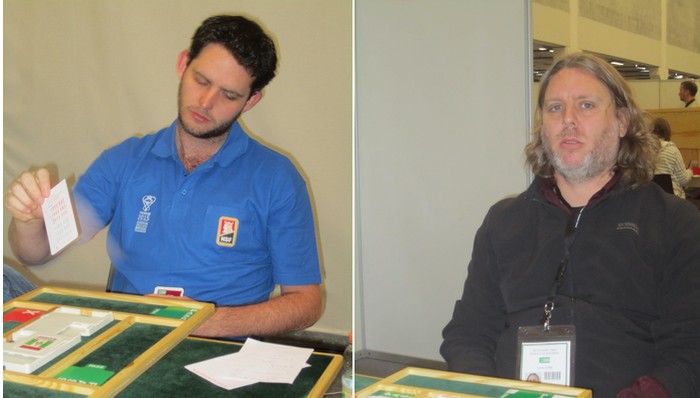 Jeg har fulgt Jon Sveindals kamp mot en alvorlig sykdom i lang tid. Prognosene hans i fjor på denne tida var ikke oppløftende, men god behandling og et livsmot mange av oss burde misunne han, gjør at Jon ser bedre ut enn på lenge. Han er på langt nær frisk, men forteller at han tar dag for dag og gjør det beste ut av tilværelsen. For oss bridgespillere betyr det i praksis å spille kort, noe bergenseren gjør med stil enda. Her i Tromsø spiller Jon Sveindal med sin tidligere landslagsmakker, Arild Rasmussen. De har australske lagkamerater og tok seg med et nødskrik til Round of16, etter 15.plass i innledende kvalifisering. I sluttspillet var det tøff motstand allerede i første kamp, med Monaco som opponent. Helness-Helgemo, Fantoni-Nunes og Zimmermann-Multon er favoritter i alle kamper de stiller opp i, men ingen lag er uslåelige. Derfor gikk Noralia til verket med åpent sinn og allerede i spill 4 henta de 14 IMP på en spektakulær måte. Jon Sveindal bestemmer seg for at det er NS som har mest kort og sperrer med 4hj. Et praktisk bud som gjorde det umulig å finne sparfargen for Tor og Geir. 6ru er en glimrende kontrakt, men 4-0 sits kan selv ikke Geir Helgemo håndtere. På det andre bordet melder Multon inn en mer normal 1hj og da kom sparen på banen. 6sp er den samme beita som 6ru, selv med kløver ut fordi det er den femte ruteren som forsvinner. Multon ser ikke dette og starter med hjerter 7 (!) for å få inn makker og en ruterstjeling. Det er ikke ofte en som spillefører får det tolvte stikket i en slem med 109 mot 6 singel i første stikk. Spill 9 Dette var et spill der en må passe på forbindelsene. Det kom kløver ut og Jon gjorde rett når han stakk opp på esset. Prøver han kappen kommer det ruter gjennom kongen og kontrakten er beit i stikk tre. Etter kløveresset la Jon ned spar ess og gikk så på hjerteren. Hjerter ess, hjerter konge (bort med en ruter) og hjerter til stjeling. Ingen dame kom ramlende. Spar til bordet og ruter mot kongen. Nå ble det beit med to rutertapere, kløverkongen og spardame. Vinnende spilleføring er å gå på hjerteren med en gang etter kløveresset. EK i hjerter og hjerter til stjeling, spar til esset og hjerter. Syd kan ikke vinne noe med å stjele med orginalstikket sitt i spar, så han kaster et kort. Etter hjerterstjelingen spilles bordet inn på den andre sparhonnøren og på den trettende hjerteren forsvinner enda en ruter. En taper i kløver, ruter og spar. Om den siste planen er bedre enn den Jon valgte, klarer ikke jeg å regne ut eksaktlig. Rører en ikke trumfen kan det fort ble en stjeling med noe som ikke er et orginalt sparstikk. Jon sin spilleføring vinner med Dxx i hjerter eller ruteresset foran. På den annen side er vest alltid hjemme om hjerteren sitter 4-3 med lengden bak vedf IKKE å spille spar i stikk to. Han tåler uansett ikke spar D10xx, så hvis syd ikke har den fjerde hjerteren, stjeler vest og henter den trettende med sparkongen som inntak. Skulle syd ha den fjerde hjerteren, kan vest stjele med sparknekten og vinner igjen hvis den holder. Multon vinner 4sp ved å ikke røre sparen før han går på hjerteren. 12 IMP til Monaco. Hissig på grøten? Jeg vet ikke hva en skal si om NS sine meldinger i dette spillet. Moderne bridge er aktiv og en melder inn på høy og kaniner (er det noe som heter det?). Legg merke til Zimmermanns pass første gang. Han har ingen god melding uten spar hold og uten hjerter, så han legger seg i busken. Syd var nok redd øst satt på en straffepass med spar og prøvde å redde makker. Zimmermann ville doblet alt som kom, i alle fall 2ru. Det ga den nette sum av +1100. 12 IMP mot 3NT 11 på den andre bordet. De melder som.. I forrige spill antydet jeg at australienerne meldte hardt når de gikk 1100 i beit. Det går ikke an å kritisere ett og ett spill, fordi i spillet under tar de IMP'ene tilbake. Sveindal - Rasmussen går tre sonebeiter i 3hj og har nok forberedt seg på et tapsspill, men så skjedde ikke. 4sp er steinhardt mot en sterk NT i vest. Ingen makt i verden kan beite 4sp, selv med hjerter ut. Jeg skal selvsagt ikke lære Tor Helness å melde, men jeg hadde meldt 1sp istedet for å redoble. _________________________________________________________________________________ Justin Howard & Kieron Dyke - Noralia og Australia Spill 13: God slem av Multon - Zimmermann Multon måtte kappa opp ruter 10 i nord for å vinne, men det gjorde han selvsagt ikke. 6NT er en flott kontrakt som avhenger at enten sparen eller ruteren ordner seg. Sveindal - Rasmussen stopper i 3NT og vinner litt heldig 13 IMP i stedet for å tape omtrent det samme. En småfin ledelse til Noralia etter 14 spill. More to come!! ___________________________________________________________________