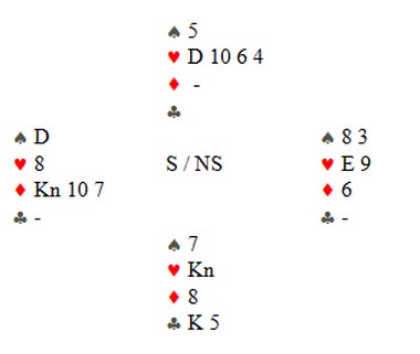 Men her gjør dere det for vanskelig føler jeg. Over 3hj synes jeg Fredrik stille og rolig skal støtte rutenen til 4ru. Det er krevd til utgang og han kan se at ruterkontrakt spiller fortreffelilg. 4hj viser kortfarge, men jeg skjønner at Anne-Lill ikke kan melde Blackwood fordi trumfen er ikke bestemt enda. Det er kanskje logisk at ruteren er trumf, men på den annen side kan øst ha sterke kort med sparstøtte enda vel? Etter 4ru vil øst cuebidde hjerteresset og nå går vest i Blackwood. Når makker viser tre ess og ruterdamen etterhvert, kan kan telle 4 + 2 + 5 + 2 = 13. Noen vil kanskje mene at ruteren kan være EDxx mot Kxx, men det ser unektelig ut som øst har minst fem ruter etter dette meldingsforløpet. Mitt BOLS-tips: "Støtt med støtte!"