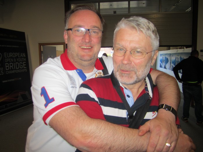 Norsk Bridgeforbund bestemte tidlig at beste norske lag i EM ville få tittelen "NORGESMESTER". Jeg har ikke sett regler, men antar at det må være kun norske spillere på laget og da var det LILLEBALUBA som kom lengst. De kom til kvartfinalen og ble dermed nr.5 i Europamesterskapet. Vi gratulerer!! (Er det andre regler som gjelder, er det fint om noen oppklarer. Jeg forstod at det selv i Tromsø var diskusjoner om hvem som ble Norgesmester (??!). Kanskje en ide at de som bestemte av beste norske lag/par i EM skal bli Norgesmester, samtidig hadde tenkt gjennom scenarier som ville dukke opp? Håper slike ting er klar til neste turnering er ferdig. Dette bildet er fra 2012, men jeg regner med Norgesmestrene har holdt seg godt siden den gang. Fv: Gerd Marit Harding, Helge Stanghelle, Anne Irene Bogen og Frank Bogen. Håkon Bogen spilte også på laget.