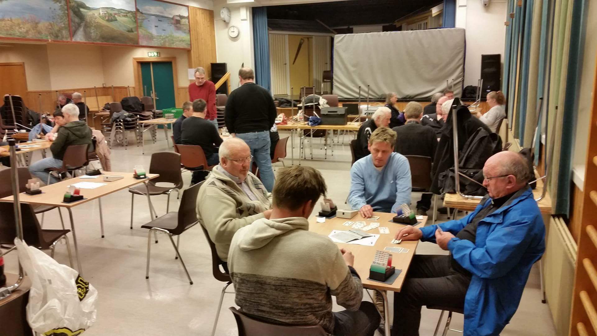 18 par til start i årets påskebridge. Det ble en fin kveld, med mange gode samtaler og mye fin bridge.