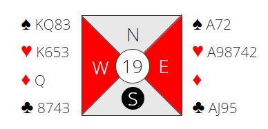 Det var en rekke ruterkontrakter på forskjellige trinn. Så kom det en rekke utganger i hjerter, og syv av dem fikk +650 for elleve stikk. Selv om det egentlig er ett stikk for lite ga det +18 (av +68 mulige). De som fikk tolv stikk i utgang (+680) noterte pene +40. Noen av dem fikk det veldig enkelt da syd spilte ut kløver konge som tok med seg tieren og esset - kun en kløvertaper.