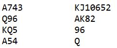 Her er et spill fra dagens spilling hvor Ø/V måtte kommunisere godt i meldingene om de skulle finne frem til toppkontrakten: