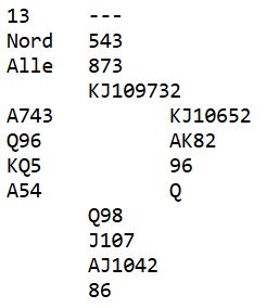 PS. Det var selvsagt mange som passet med nords kort i faresonen. Etter pass fra nord bør Ø/V ha en veldig bra sjanse til å finne frem til slem. Men om nord passer har ikke spillefører noen indikasjon på det med "ledige plasser" og hvordan trumfen bør spilles. I så fall er det "random" hvem som eventuelt har tre trumf, og å legge ned feil honnør som fører til en bet i den konteksten er bare uflaks.