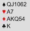 Her er et spill fra Round of 32-kampen som ROSENTHAL vant mot VEDANTA, et lag med proffer fra USA, Nederland og Israel. Ta østs kort og vurder denne meldesituasjonen hvor vest var giver og N/S i sonen: