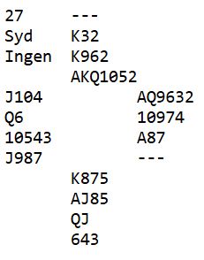 Her er et typisk parturneringsspill fra SILODOR PAIRS i St Louis, en turnering som tidligere nevnt ble vunnet av Nicolai Heiberg-Evenstad sammen med svenske Alexander Sandin. Seieren ble fulgt godt opp av Martin Andresen og Thor Erik Hoftaniska som ble nr. 2!